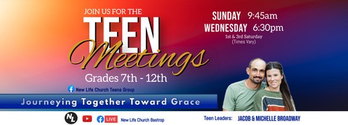 New Life Youth is for grades 7th through 12th. This class is geared toward teaching God's Word on a more advanced level than our younger groups. We cover many of the same issues, but more in-depth. We focus on teaching how to transition from high school to college and from adolescence to adulthood.